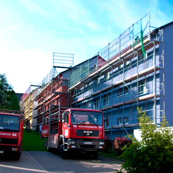 Was immer Sie zur optimalen Absicherung Ihrer Baustelle benötigen - wir bieten es an. Unsere Gerüste sind unkompliziert im Aufbau, zuverlässig und werden regelmäßig auf Sicherheit geprüft. Gerüste noch sicherer, schneller, vielfältiger und kreativer, für jeden Zweck optimal angepaßt zu bauen, das ist unser Ziel.